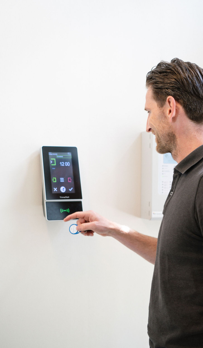 Het systeem maakt tijdregistratie nóg efficiënter. Kloktijden worden automatisch gekoppeld aan projecten en medewerkers, verlof en ziekte kunnen worden meegenomen, en via het receptiescherm zie je in één oogopslag wie aanwezig is. Combineer je het met de Timetell app, dan kunnen medewerkers ook buiten kantoor veilig in- en uitklokken met behulp van geofencing.